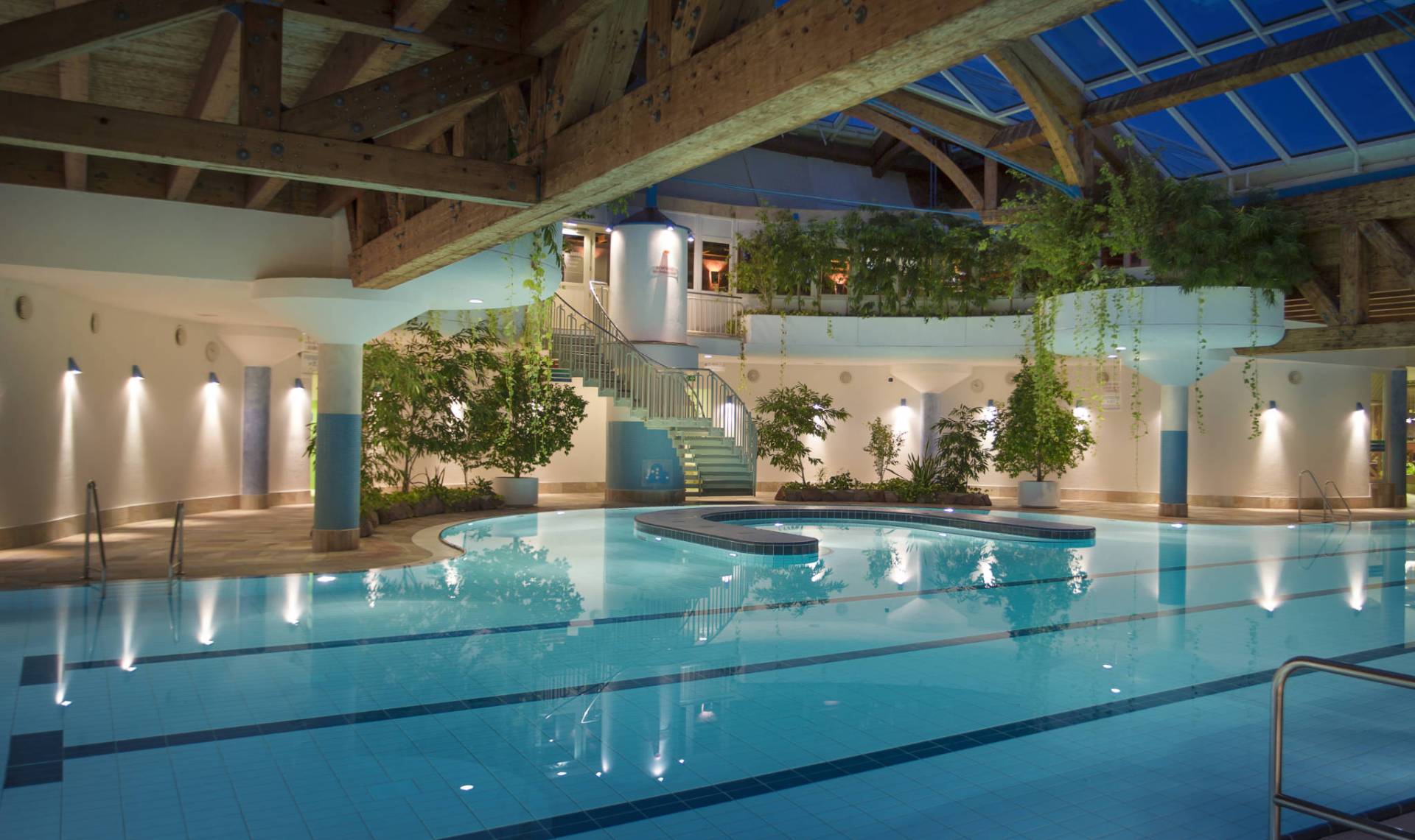 Das Kurschwimmbecken ist die größte Wasserlandschaft im Riff. Hier bietet sich die Möglichkeit einfach nur zu schwimmen, sich im Strömungskanal treiben zu lassen oder einfach nur Spaß zu haben mit den Bodensprudlern.